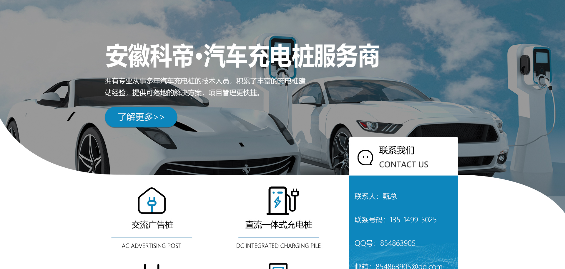 關(guān)于我們安徽科帝新能源科技有限公司坐落于安徽省會(huì)-合肥,是一家研發(fā)、生產(chǎn)智能充電樁設(shè)備,汽車(chē)充電站后臺(tái)監(jiān)控管理系統(tǒng)和生產(chǎn)高壓開(kāi)關(guān)設(shè)備的企業(yè).由專門(mén)的研發(fā)團(tuán)隊(duì)、管理團(tuán)隊(duì)按照現(xiàn)代化企業(yè)制度規(guī)范設(shè)立的有限責(zé)任公司。致力于為能源智能、安全的應(yīng)用和節(jié)能減排提供整體的技術(shù)與產(chǎn)品解決方案。科帝集研發(fā)、設(shè)計(jì)、生產(chǎn)、銷(xiāo)售以及服務(wù)于一體,在電動(dòng)汽車(chē)充電方案,充電設(shè)施建設(shè)和城市配電方面擁有廣泛的技術(shù)研究及經(jīng)驗(yàn)積累,為客戶提供安全、智能的充電設(shè)備及充電運(yùn)營(yíng)站建設(shè)一體化解決方案。并堅(jiān)持以人為本、質(zhì)量為先、顧客至上、不斷創(chuàng)新”的企業(yè)理念,為能源行業(yè)的發(fā)展、節(jié)能減排做出重大的貢獻(xiàn)。公司擁有豐富的產(chǎn)品種類,目前科帝已研發(fā)生產(chǎn)了三十多種產(chǎn)品,充電設(shè)備有直流一體式充電樁、直流分體式充電樁、直流廣告樁、交流廣告樁、廣告一體樁、壁掛交直流樁;等多種充電設(shè)備;每一款產(chǎn)品都是精心打造,力求為客戶提供優(yōu)越的用戶體驗(yàn)。展望未來(lái)科帝將通過(guò)持續(xù)的自...